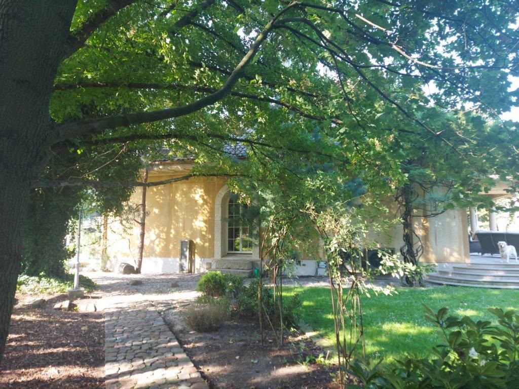 Nieruchomość otoczona jest niezabudowanymi terenami rolnymi oraz sąsiaduje z zespołem dworskim, który obecnie pełni funkcję hotelu i restauracji. Przedmiotowa działka stanowi część parkową tego zespołu. Nieruchomość objęta jest wpisem do rejestru zabytków jako część parku pobliskiego dworu.