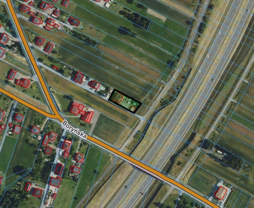 Przedmiotowa nieruchomość gruntowa położona przy ulicy Boryńskiej w sąsiedztwie autostrady A1. Dojazd do nieruchomości od ul. Boryńskiej oraz drogą serwisową autostrady Al i dalej niewielkim fragmentem drogi wewnętrznej (działka nr 770/38). Bezpośrednie otoczenie stanowią tereny zabudowane budynkami mieszkalnymi jednorodzinnymi, tereny rolne oraz pas drogowy autostrady Al.