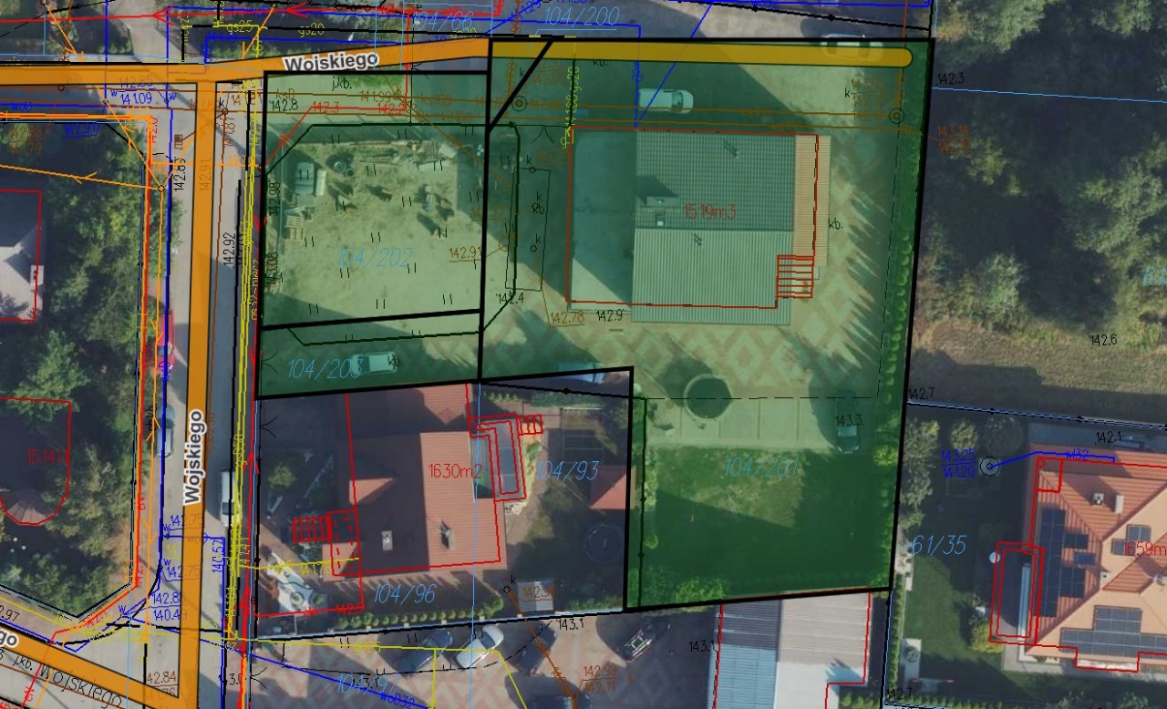 Nieruchomość obejmuje działki o numerach geodezyjnych 104/202, 104/203, 104/200 i 104/201, które stanowią jedną zorganizowaną całość.