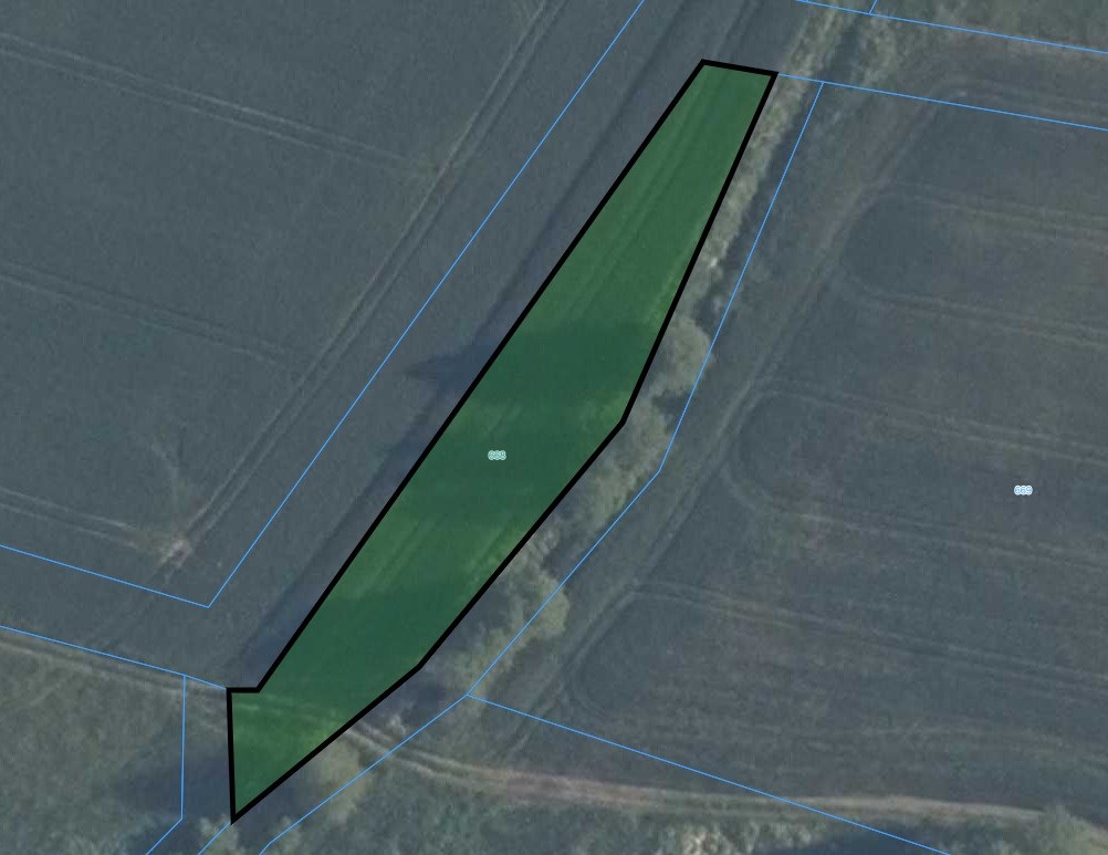 Kształt działki zbliżony do prostokąta, nie w uprawie - łąka.