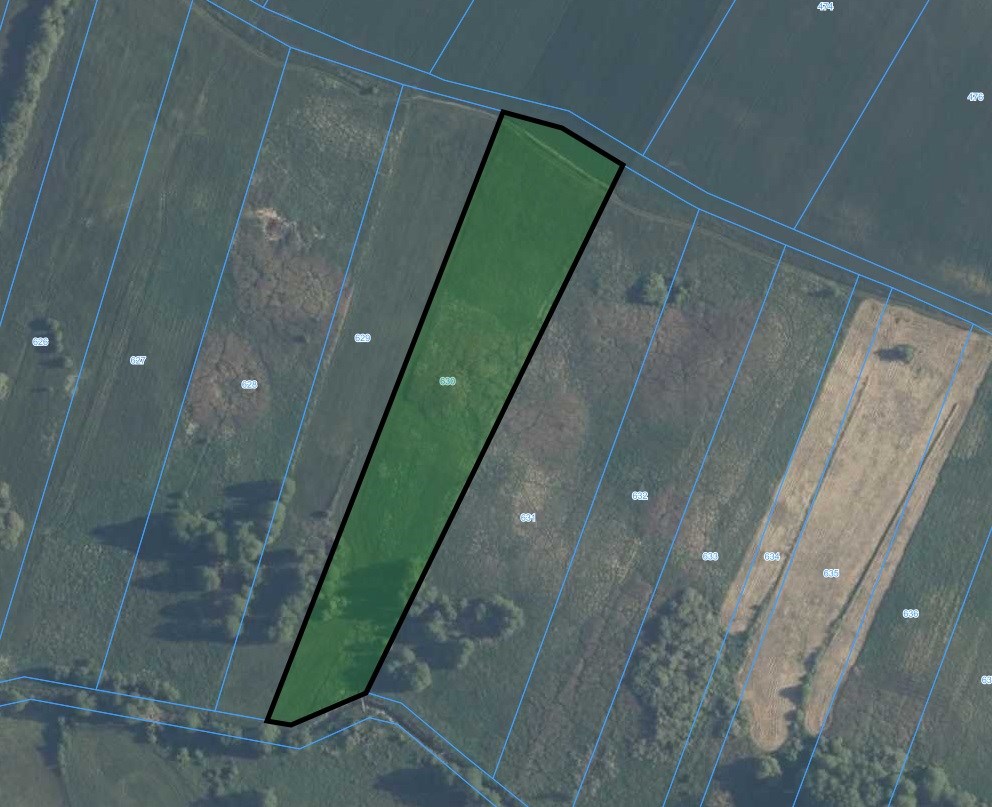 Kształt działki zbliżony do prostokąta, w uprawie.