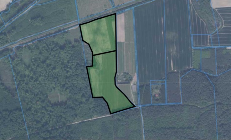 Grunty to działki o numerze ewidencyjnym: 123/2 (droga) oraz 124 o łącznej powierzchni 5,030 ha wraz z zabudowaniami o pow. 1005,20 m2.