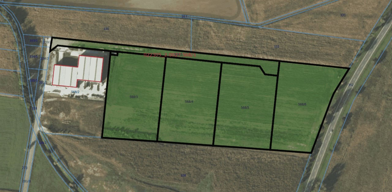 2. działka 568/3 o pow. 1,0985 ha; wymiary 88 m x 127 m: