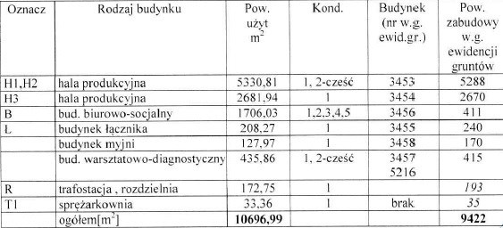 Przedmiotem sprzedaży jest prawo użytkowania wieczystego gruntu oraz własność budynków o dominującej funkcji produkcyjnej z zapleczem socjalno- biurowym, magazynowym, warsztatowym, placami składowo-manewrowymi.