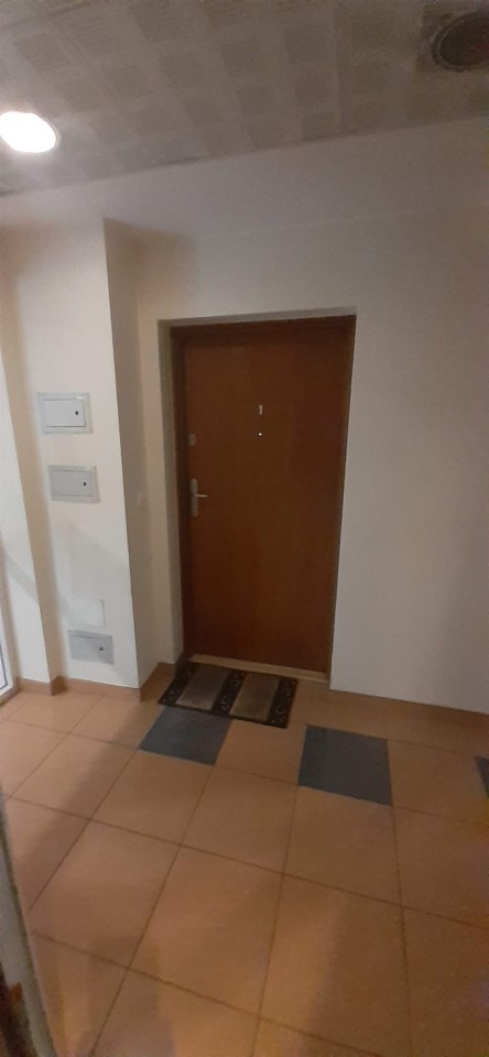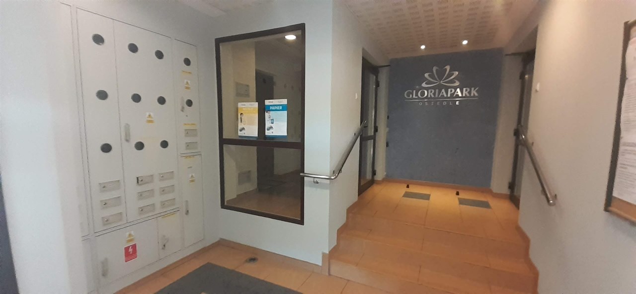 W pokojach na podłogach ułożone są panele, a ściany są malowane. W przedpokoju jedna ściana jest tapetowana, a druga zabudowana szafami. Łazienka jest wykończona glazurą i terakotą, posiada wannę, umywalkę, piec dwufunkcyjny oraz WC. W kuchni ściany są malowane, na podłodze terakota, a wyposażenie obejmuje zlew i kuchnię gazową. Ogólny stan techniczny lokalu mieszkalnego oceniany jest jako bardzo dobry.