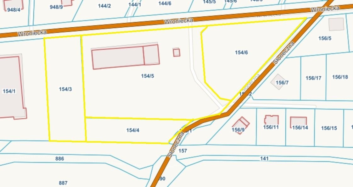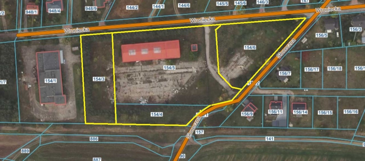 • w skład nieruchomości wchodzą działki grunty o numerach: 154/3, 154/4, 154/5 oraz 154/6, przy czym działka nr 154/5 jest częściowo zabudowana budynkami komercyjnymi o łącznej powierzchni 1,5126 ha,