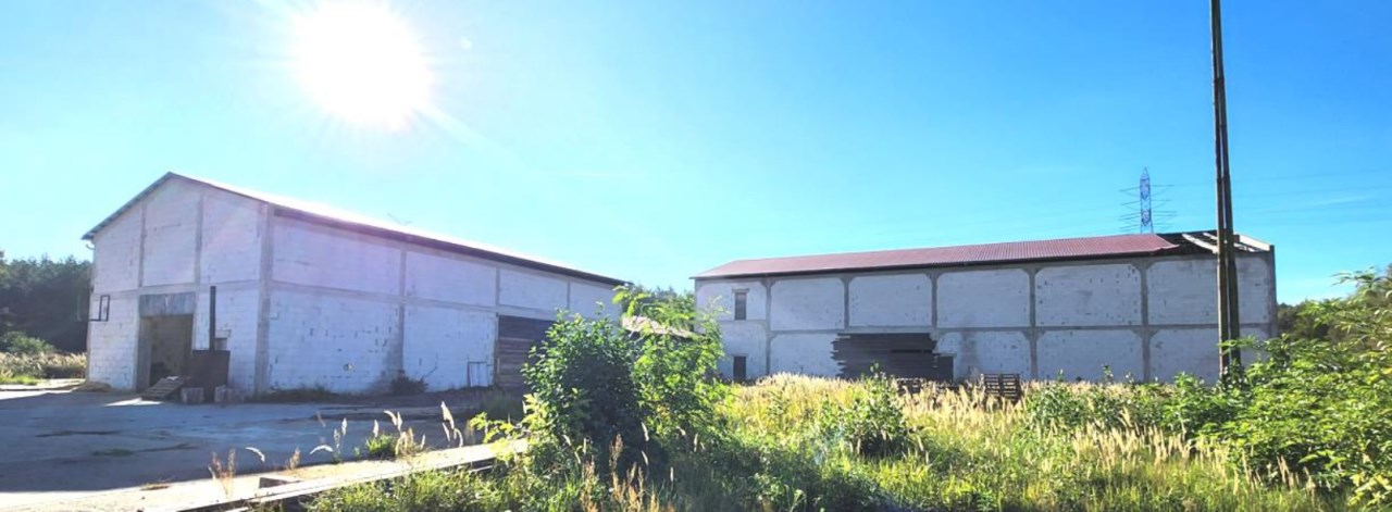 Zabudowane są dwiema halami produkcyjno-magazynowymi wzniesionymi w kształcie litery L, za pomocą łącznika, z wydzielonymi wewnątrz pomieszczeniami biurowo-socjalnymi. Obiekty znajdują się w stanie surowym otwartymi i kwalifikują się do wykończenia.