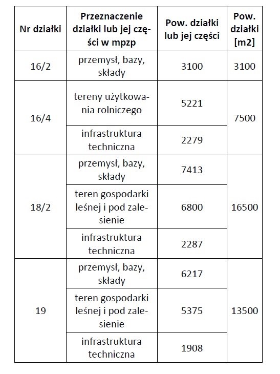 ŁĄCZNA POWIERZCHNIA DZIAŁEK GRUNTU NR 18/2 ORAZ 19 – 30000 m2